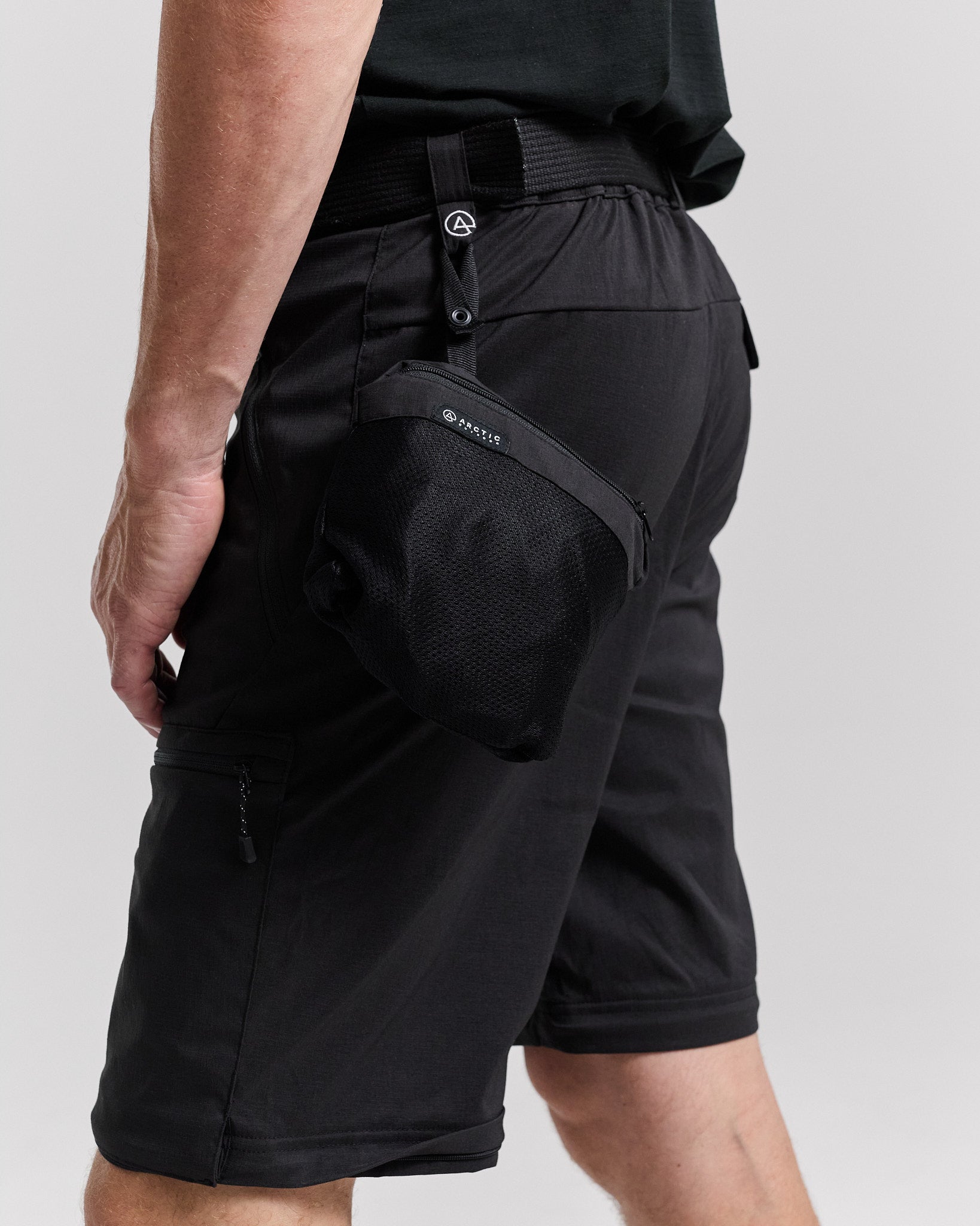 Buksebene kan nemt lynes af, pakkes ned i egen pose og hænges på shortsene.